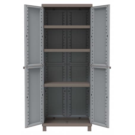 Art. TP2680 in resina antiurto. Ottima resistenza agli agenti atmosferici. Doppia anta, tre ripiani interni. Dimensioni cm 68x39x170h