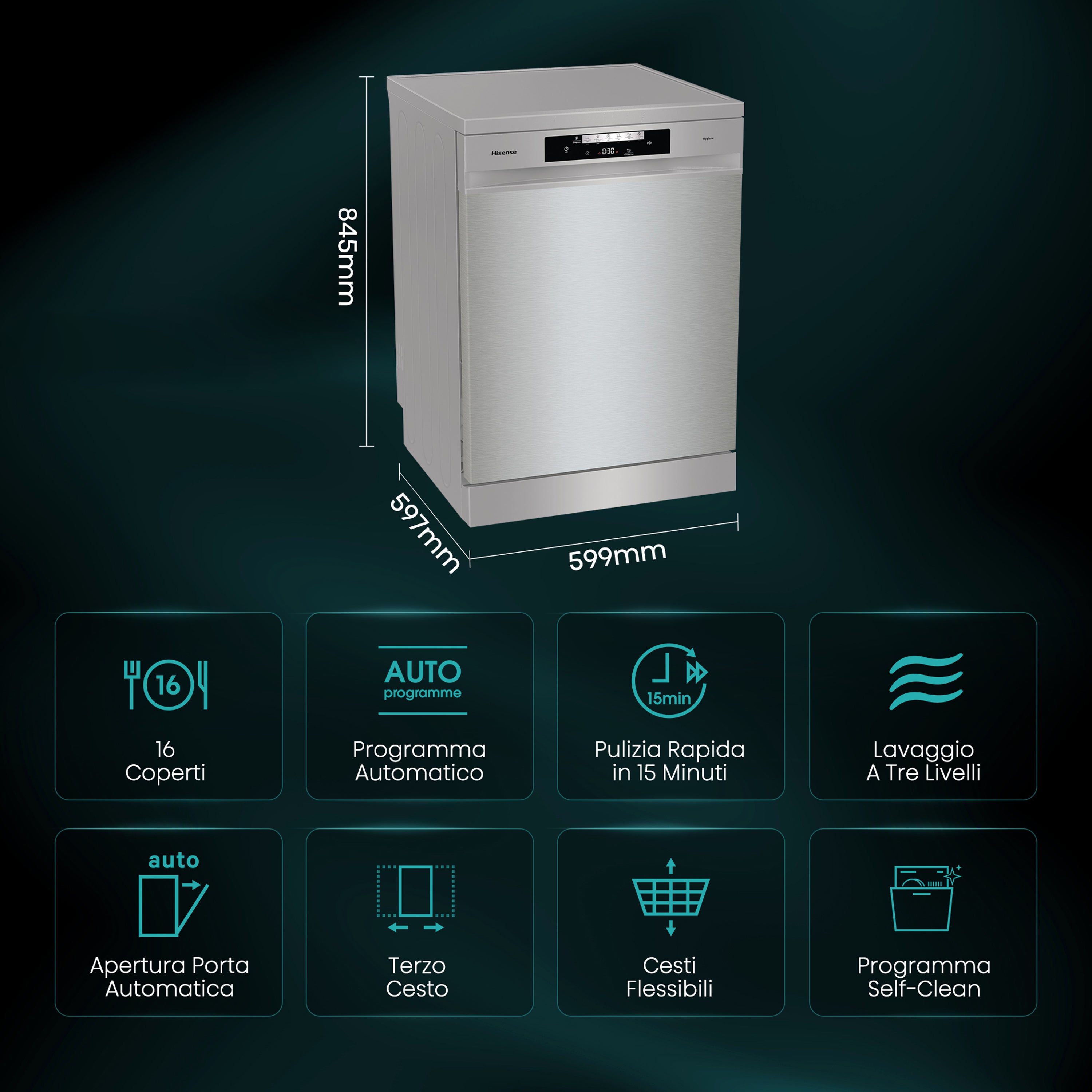 Grazie alle ultime tecnologie di Hisense, il programma Automatico regola autonomamente le tempistiche e l'intensità in base al carico e al livello di sporco.