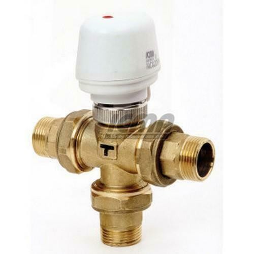 Valvola di zona a tre vie a pistone, con attuatore elettrotermico normalmente chiuso con microinterruttore di fine corsa per contatto pulito. Pressione massima d’esercizio 10 bar. Pressione differenziale max. 1 bar. Temperatura d’esercizio max. 95°C.